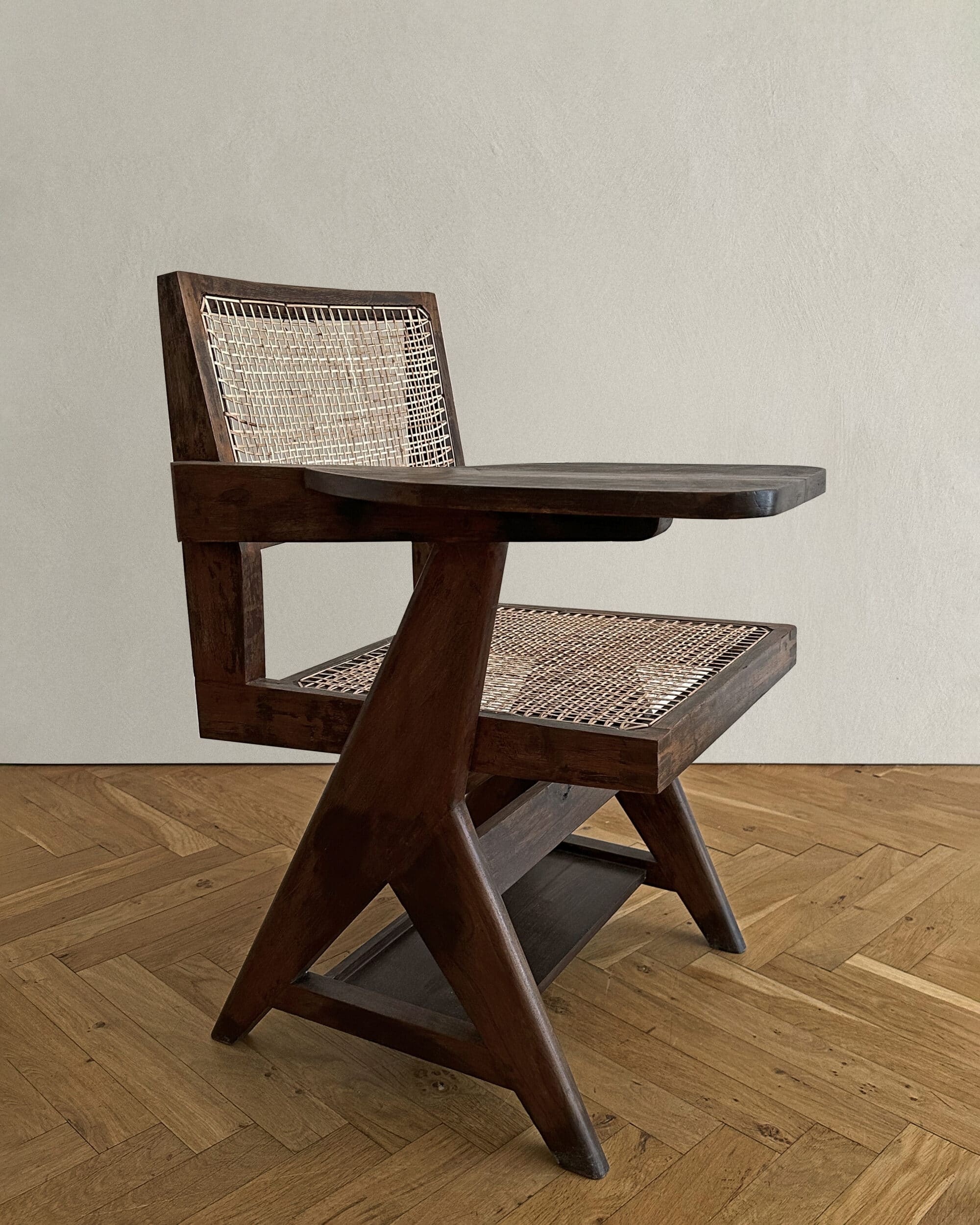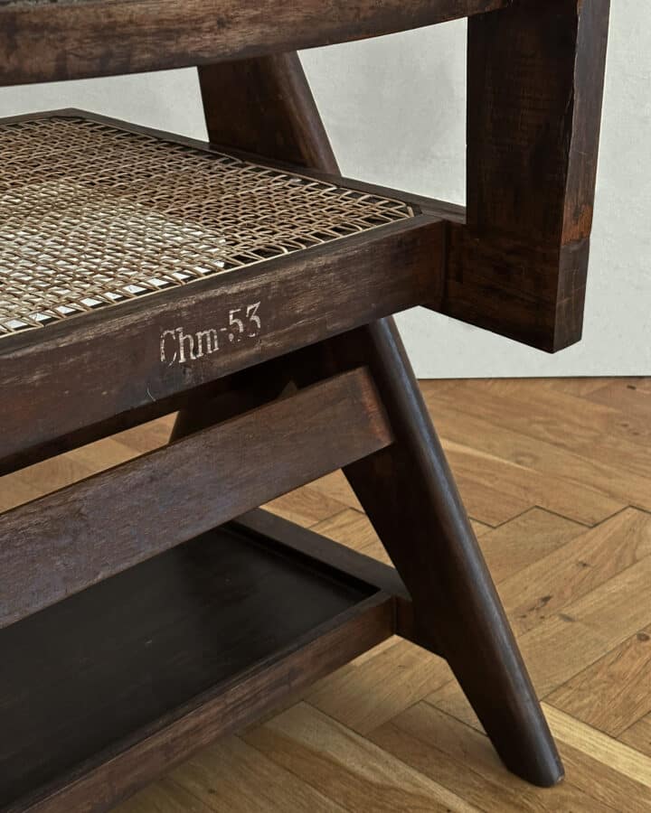 In 1947, Le Corbusier was commissioned by the Indian prime minister, to lead the design of Chandigarh, the new capital city of Punjab. His long time collaborator and cousin, Pierre Jeanneret, was assigned as senior site architect, and one of his remarkable contributions, was the furniture he designed for the entire complex. Jeanneret's minimal yet sophisticated and functional designs were executed by local craftsmen using locally-sourced materials, such as teak, rosewood and caning. Today the original pieces stand out with its exceptional patina and character, each with its own story. read less