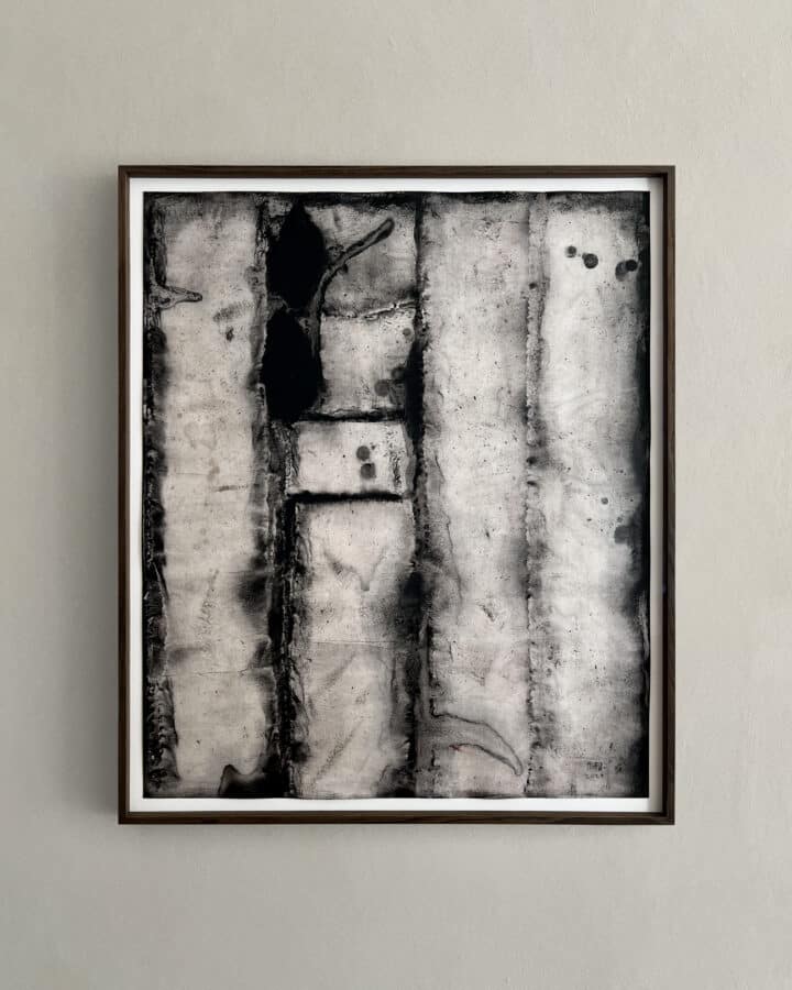 Mixed media on paper, smoked oak framed