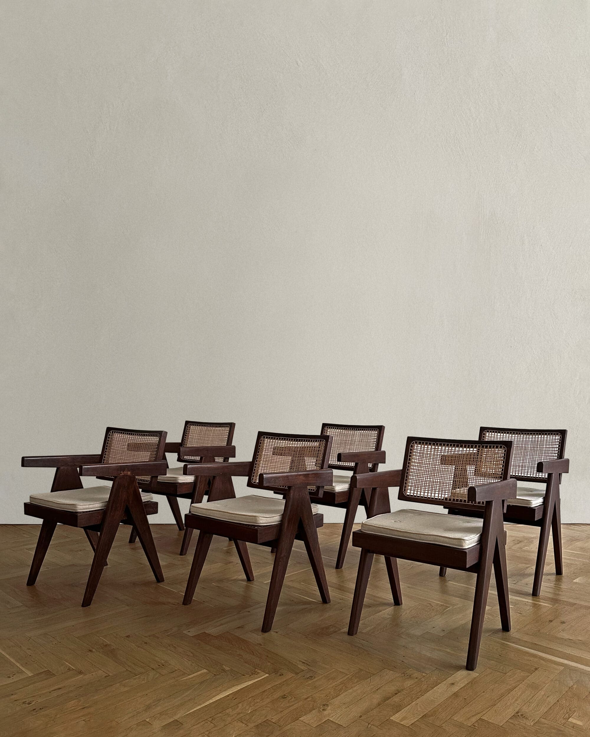 In 1947, Le Corbusier was commissioned by the Indian prime minister, to lead the design of Chandigarh, the new capital city of Punjab. His long time collaborator and cousin, Pierre Jeanneret, was assigned as senior site architect, and one of his remarkable contributions, was the furniture he designed for the entire complex. Jeanneret's minimal yet sophisticated and functional designs were executed by local craftsmen using locally-sourced materials, such as teak, rosewood and caning. Today the original pieces stand out with its exceptional patina and character, each with its own story. read less