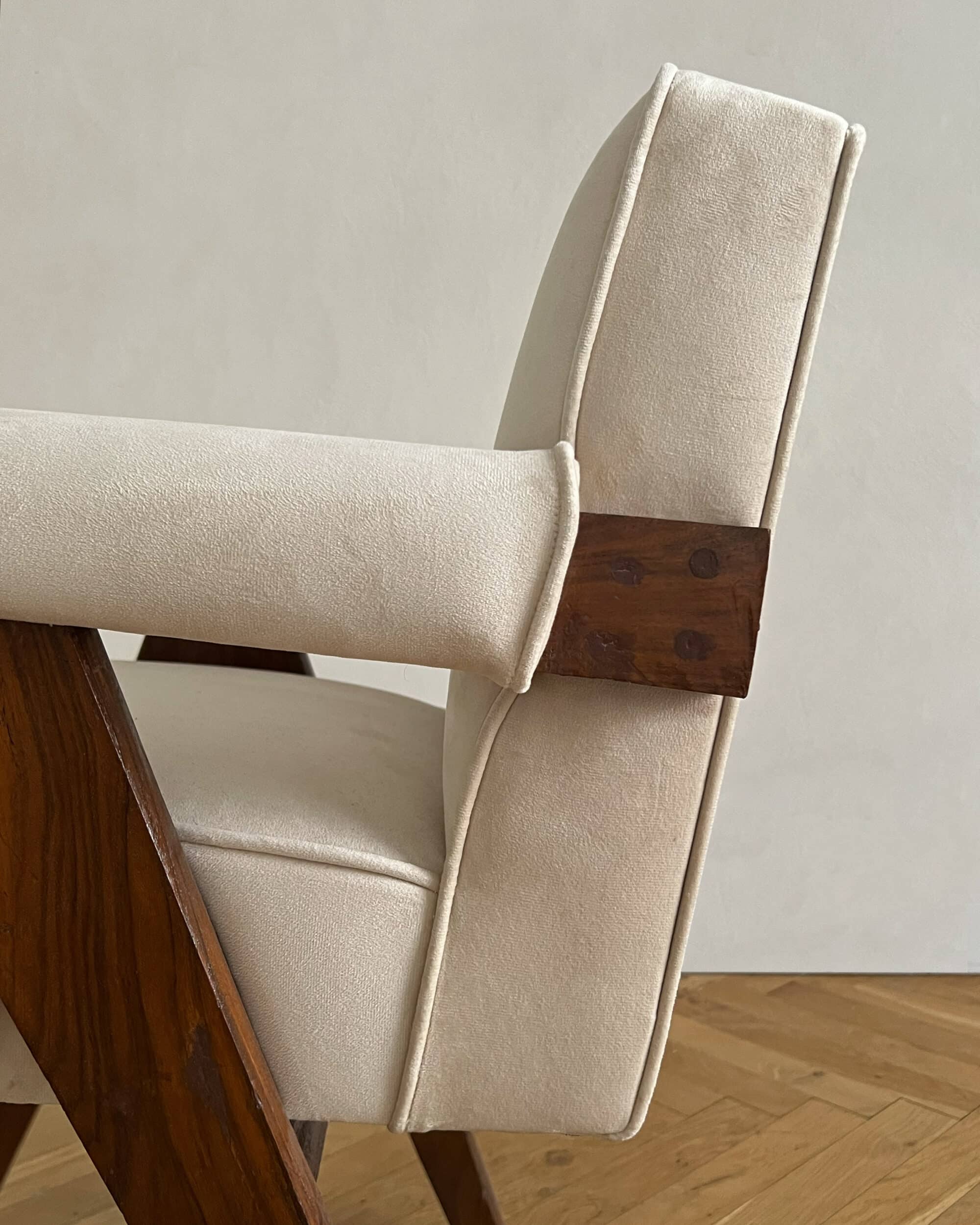 In 1947, Le Corbusier was commissioned by the Indian prime minister, to lead the design of Chandigarh, the new capital city of Punjab. His long time collaborator and cousin, Pierre Jeanneret, was assigned as senior site architect, and one of his remarkable contributions, was the furniture he designed for the entire complex. Jeanneret's minimal yet sophisticated and functional designs were executed by local craftsmen using locally-sourced materials, such as teak, rosewood and caning. Today the original pieces stand out with its exceptional patina and character, each with its own story. read less