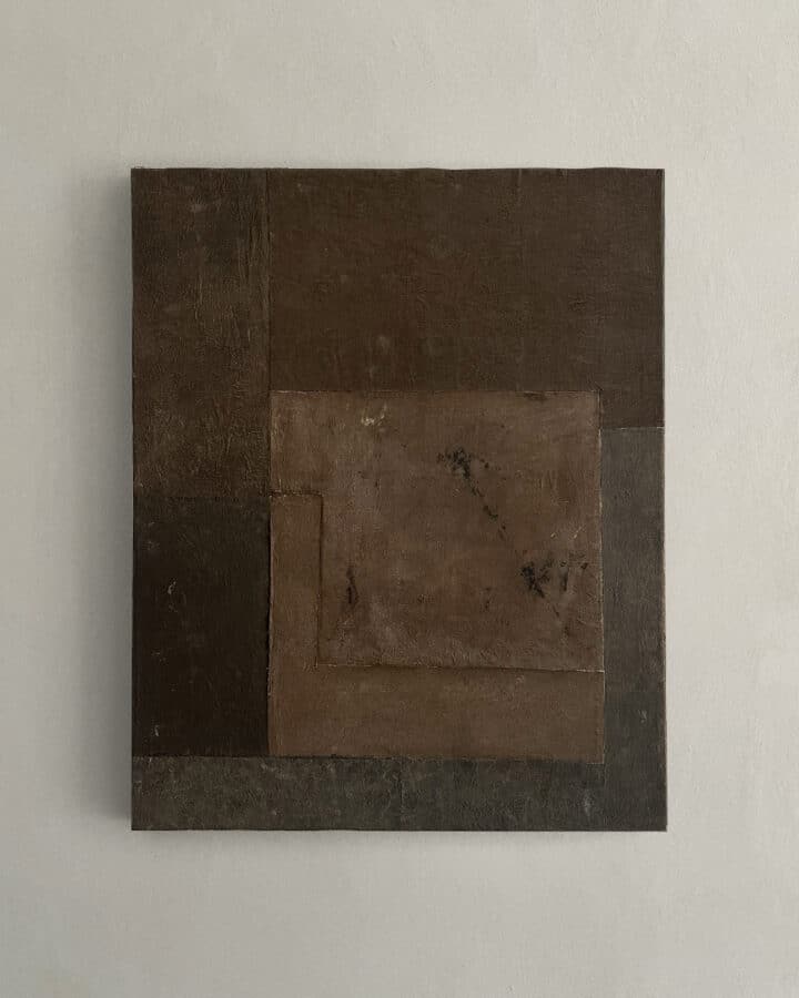 Emma Zhang, born in Wuhan, China, in 1982. Inspired by antique books, paper, and canvases, Zhang's artworks offer a unique texture and narrative. Trained at the Hubei Institute of Fine Arts and the École supérieure d’art in France, she now works from her Beijing studio. Zhang's artistic practice centers on simplicity and purity, avoiding conventional meanings. Her trademark earthy palette and focus on handmade paper, antique books, and fabrics create a quiet yet textured aesthetic. Influenced by Agnes Martin, Zhang invites viewers to explore the understated layers and subtle textures in her monochromatic works, each holding a unique challenge and personal connection to life's nuances read less