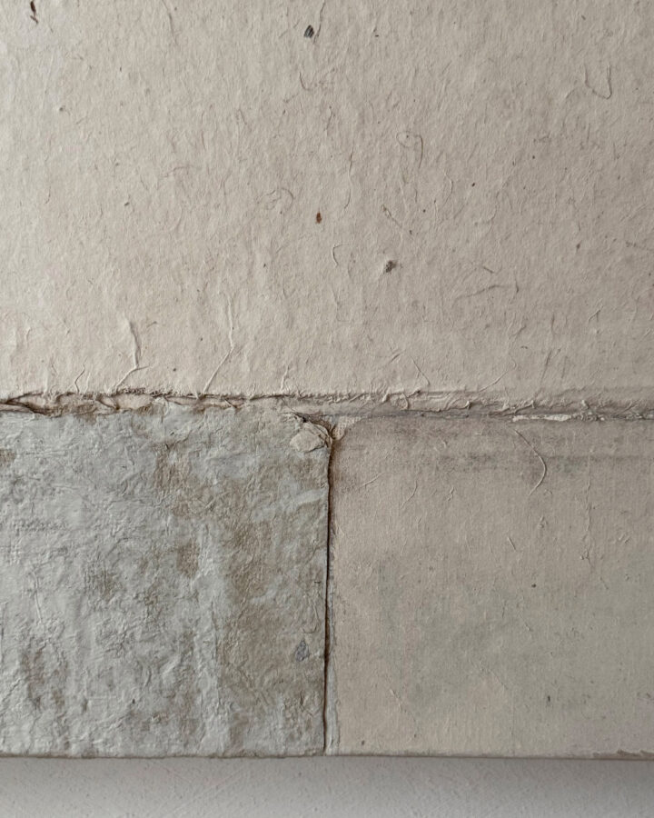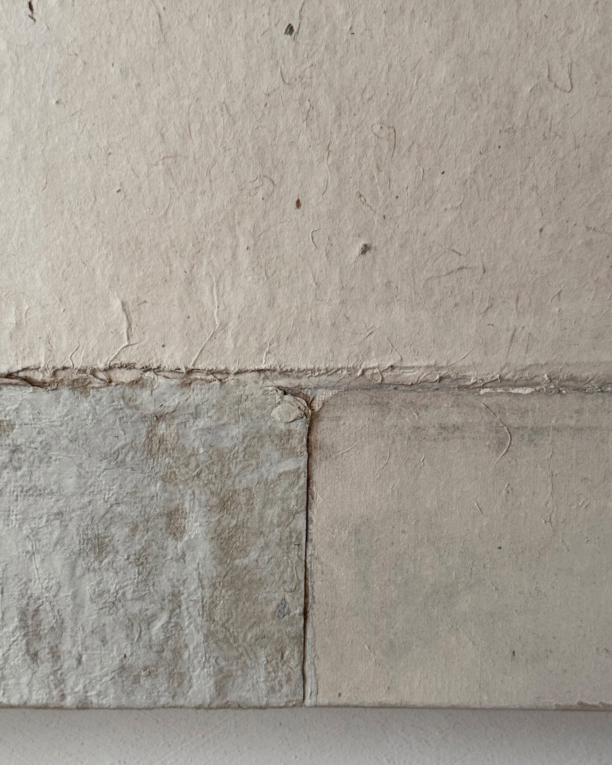 Emma Zhang, born in Wuhan, China, in 1982. Inspired by antique books, paper, and canvases, Zhang's artworks offer a unique texture and narrative. Trained at the Hubei Institute of Fine Arts and the École supérieure d’art in France, she now works from her Beijing studio. Zhang's artistic practice centers on simplicity and purity, avoiding conventional meanings. Her trademark earthy palette and focus on handmade paper, antique books, and fabrics create a quiet yet textured aesthetic. Influenced by Agnes Martin, Zhang invites viewers to explore the understated layers and subtle textures in her monochromatic works, each holding a unique challenge and personal connection to life's nuances read less