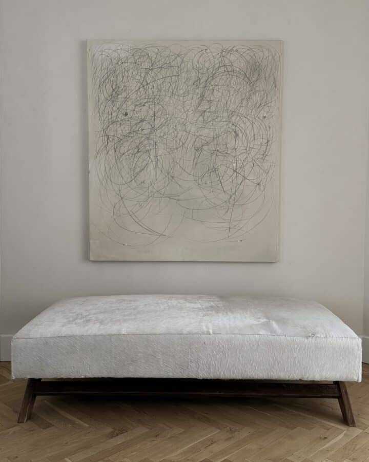 Grace Watts creates vibrant compositions in oil, acrylic, and graphite on canvas, drawing inspiration from a philosophy of self-evolution. Her process often begins with deep dives into philosophical texts, extracting passages that resonate with her and transforming them into symbolic narratives for her work. Like Hilma af Klint, Watts explores the significance of the soul and personal growth in her art. With a background in graphic communication, Watts initially pursued a career in graphic design and art direction. Her work reflects a fascination with textural depth, influenced by her exploration of modernist interiors through photography. She values the lived-in appearance of her canvases, achieved through multiple layers, which add a sense of richness and depth to her pieces. read less
