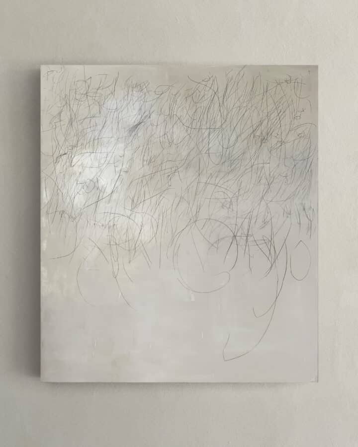 Grace Watts creates vibrant compositions in oil, acrylic, and graphite on canvas, drawing inspiration from a philosophy of self-evolution. Her process often begins with deep dives into philosophical texts, extracting passages that resonate with her and transforming them into symbolic narratives for her work. Like Hilma af Klint, Watts explores the significance of the soul and personal growth in her art. With a background in graphic communication, Watts initially pursued a career in graphic design and art direction. Her work reflects a fascination with textural depth, influenced by her exploration of modernist interiors through photography. She values the lived-in appearance of her canvases, achieved through multiple layers, which add a sense of richness and depth to her pieces. read less